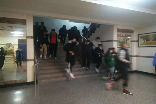 演练开始前各系召开专题会议布置演练工作,各班级辅导员、系办老师做了大量的宣传和预案的学习工作,他们走到每一个班级去指导,去检查,去示范,面对面的讲,手把手的教,真切的让每一个知识点都入脑、入心,真正让每名同学都熟悉逃生路线,掌握逃生技巧,体验紧张过程。演练之所以选择在晚课时间进行,也是根据突发事件的不规律性而设定的,夜间辅导员在位率低,逃生路线光线又不足,这些不利因素正是我们力求解决的问题。演为战、练为战,演练虽然只是短短的几分钟,用好这几分钟对同学们来说更是意义重大,让同学们体验这紧张时刻,也是让大家关注消防、珍惜生命。