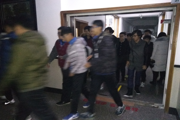 为把“119”消防宣传活动落到实处,为提高全院师生的消防安全意识,提高学生抵御和应对突发事件的能力。我院于2016年11月10日晚上1930分,在学院1号、2号教学楼,分别举行了消防逃生演练,演练由学生处统一组织指挥,学生处吕运福老师、王博老师、孙庆好老师,通关系副主任徐凤龙老师、干事孙永海老师、王和彬老师,船舶、珠宝系干事刘姜青老师、姜占原老师、张绪宝老师及3500名在校生一同参加了逃生演练。