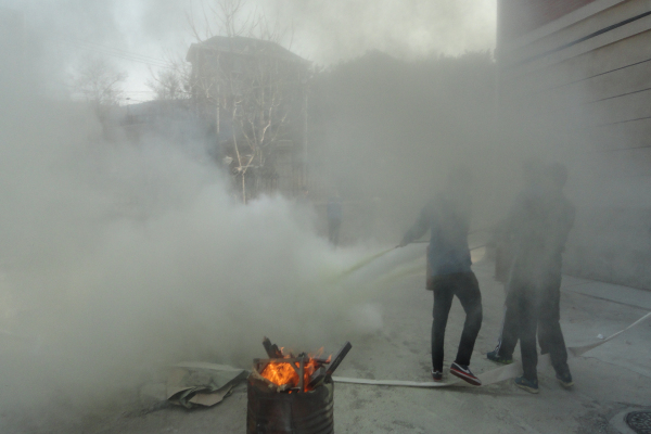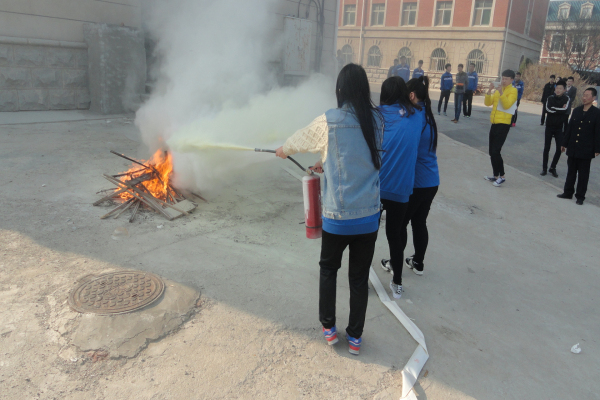吕老师首先讲了4公斤干粉灭火器的特点、使用范围及使用方法。在灭火过程中,特别要注意:1、要站在火场的上风方向;2、离火场3-5米的距离;3、对准火焰的根部来回扫射。4、干粉灭火器只适用于扑灭初起火灾,起到控制火势的作用,要想灭火彻底还得使用消防水龙带灭火。接着,吕老师为大家讲解和示范了利用消防水带灭火的动作要领和注意事项,并现场指导学生进行练习。理论讲解完毕后,现场设置火场让为同学们做灭火体验,在灭火体验过程中,同学们积极性比较高,练习得都比较认真,通过学习和体验同学们掌握了火场灭火的基本方法,提高了消防逃生和自救本领。