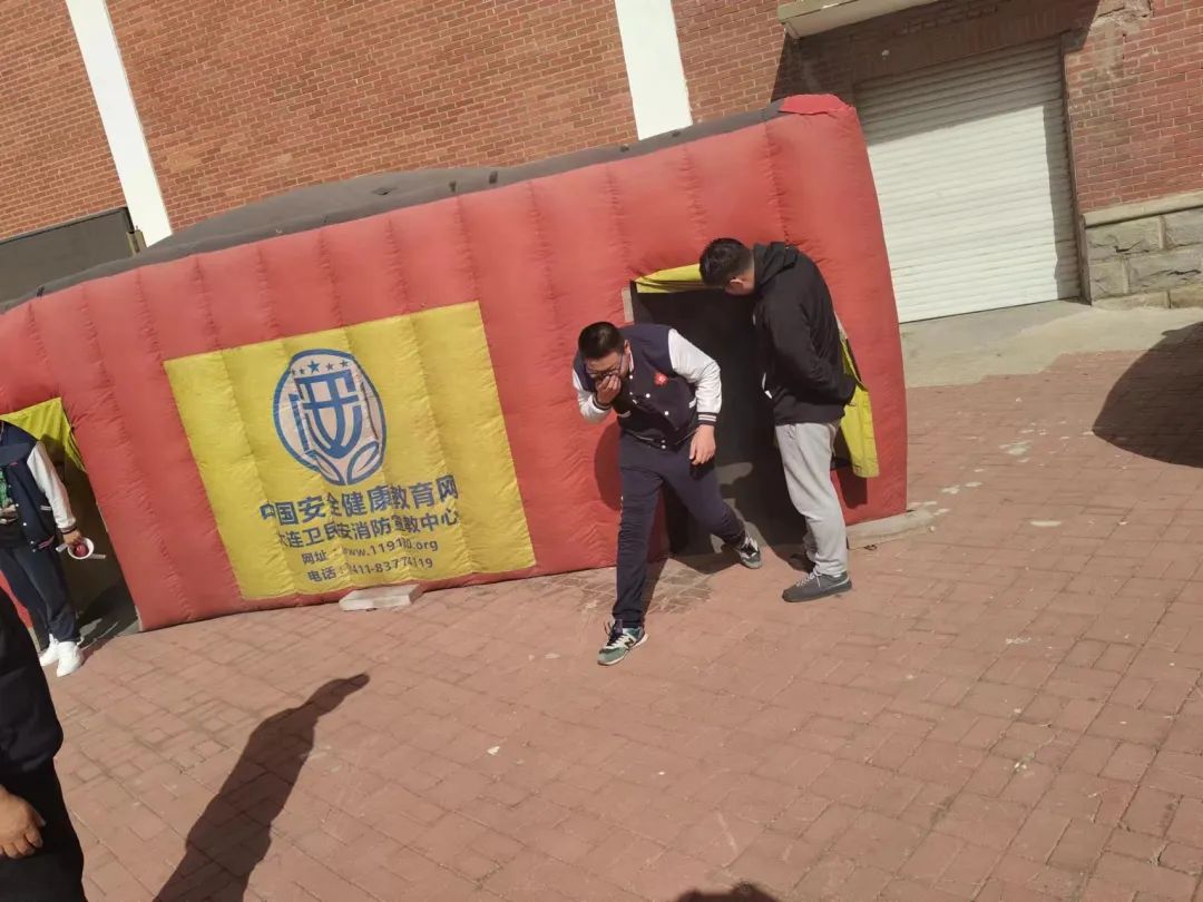 本次活动由保卫处联合大连卫民安消防健康宣教中心共同组织实施,保卫处吴晓峰、时海波两位老师现场负责技术指导,采取边讲解、边体验的方式进行。逃生舱模拟了火灾发生在楼道等密闭空间,电路短路失去光明且烟雾弥漫的场景。每一个体验者进入逃生舱之前,保卫处吴老师都会向体验者细心讲授体验方法和逃生技巧,体验过程中一定要掩住口鼻,用手扶墙屈膝弯腰摸索前行,让师生更真实地感受火灾现场的情景。现代服务系闫博主任、中职校徐凤龙副校长、陈彬老师亲身感受了火灾现场抹黑潜行、烟辣眼眸、雾呛喉鼻的惊恐场景,体验到了火场逃生的不容易,从体验中增长了逃生技能。