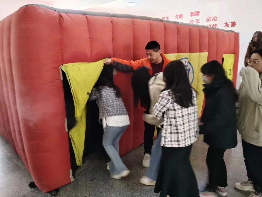 为提升学校师生员工的消防安全意识以及应急避险的能力,学院保卫处于2023年4月19日、20日在图书馆门前举行了烟雾逃生舱模拟火场逃生沉浸式体验活动,参加体验活动师生1000余人,体验给师生员工留下了深刻的印象。