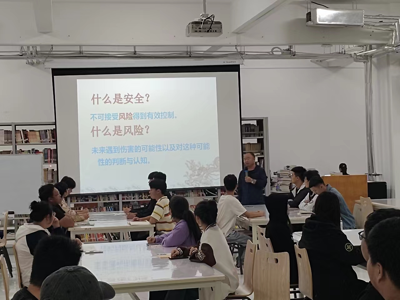 培训中,吕老师从安全委员职责要求,应具的安全素质及超前预警的意义讲起,对学生干部如何树立安全责任意识,如何发挥安全管理作用,与学生干部进行了细致的交流,教会学生干部如何发现安全隐患,如何处置报告等。
