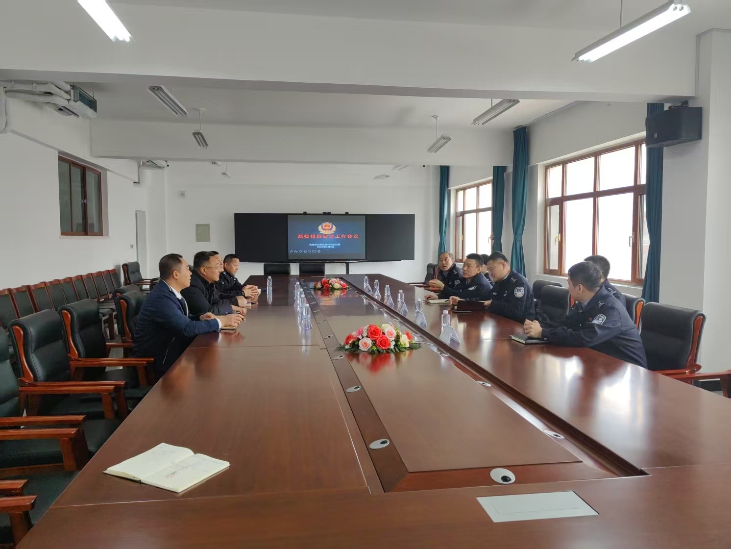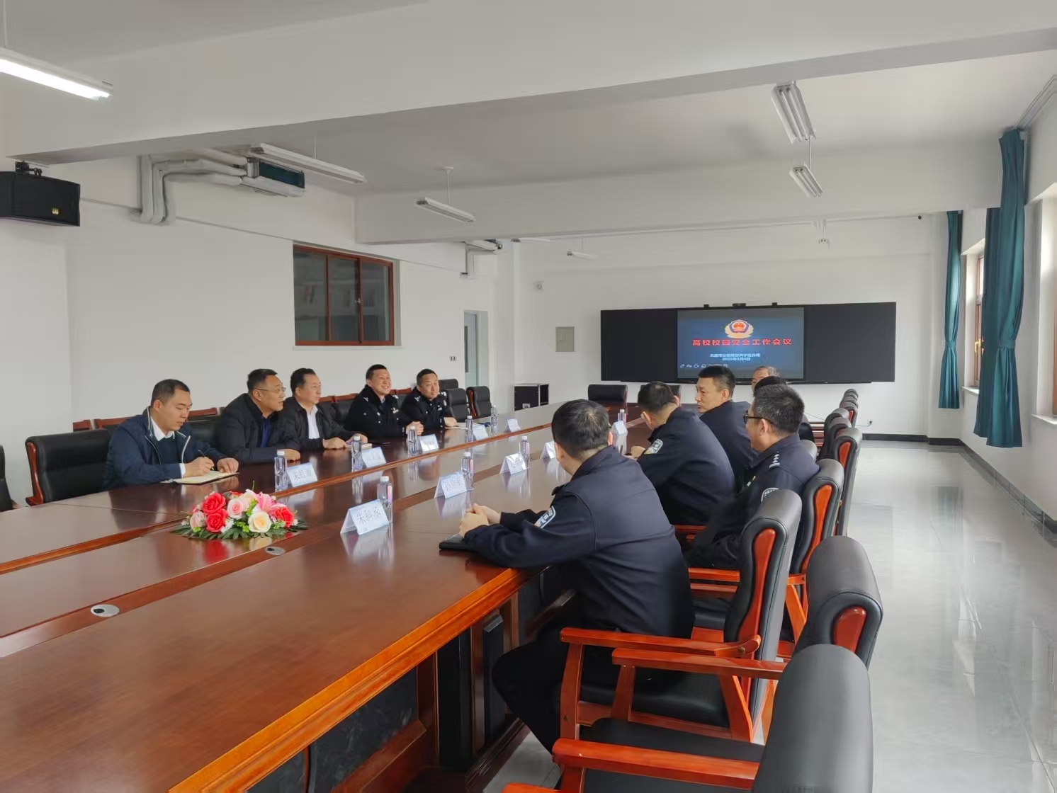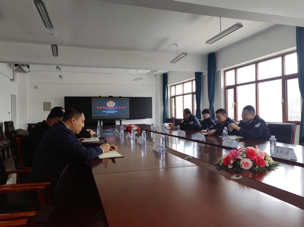 新学期开局之时正值全国两会召开之际,为做好新学期校园安全管理工作,2025年3月4日10点,甘井子区公安分局内保大队,在枫叶职院4号教学楼6楼会议室,召开营城子辖区高校安全工作会议,区分局内保大队大队长杨峻、副大队孙立军、民警楚琰华、民警王国玉;营城子派出所所长赵治坤、副所长朱科丞;辽宁警察学院保卫处长处长刘仁东、副处长高荣海;大连海洋大学保卫处处长冯义显、保卫科长朱虹源;大连枫叶职业技术学院保卫处处长孙成军参加了会议。