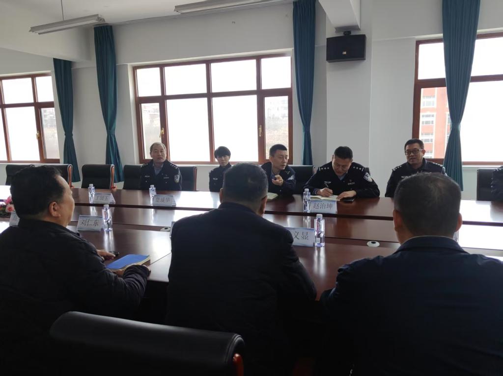 我院保卫处孙处长对甘井子区内保大队、营城子派出所、兄弟院校在校园安全管理方面给予的指导、帮助表示感谢,同时也向领导汇报了我院近期安全工作开展情况,学院领导高度重视安全工作,认真落实安全制度,加大安全投入,营造良好的安全学习氛围。孙处长对在安全管理中存在的困难及困惑主动向公安机关进行反馈,请主管机关给予协调解决。
