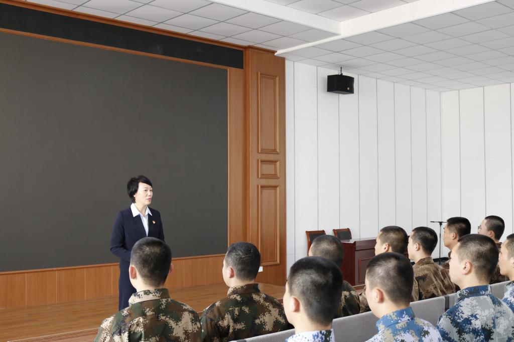 在甘井子区国防教育基地多媒体教室,党委书记申秀梅鼓励同学们要抓住这短暂训练契机,夯实思想根基,提高军事素质,提升自我能力,成为一名有灵魂、有本事、有血性、有品德的新时代“四有”军人,并希望13名入伍大学生带着全院师生的重托,出色完成各项工作任务,在新的岗位上绽放自己的光彩,用行动筑起保家卫国的钢铁长城,为实现中华民族伟大复兴的中国梦贡献自己的力量。会后学院领导为13名入伍大学生颁发纪念品并合影留念。
